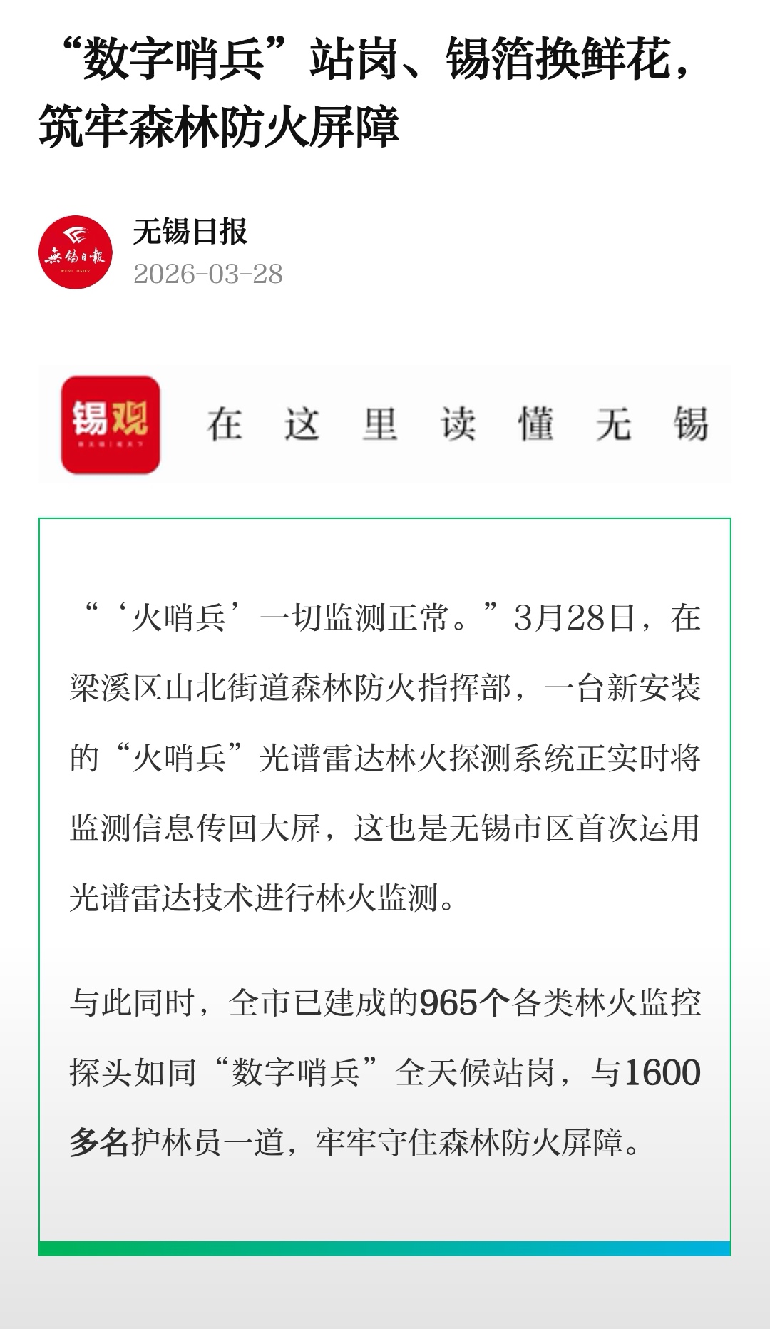 公司自主研发的“火哨兵”天网火情警戒系统,届时将在大兴安岭火情监测中发挥重要作用。