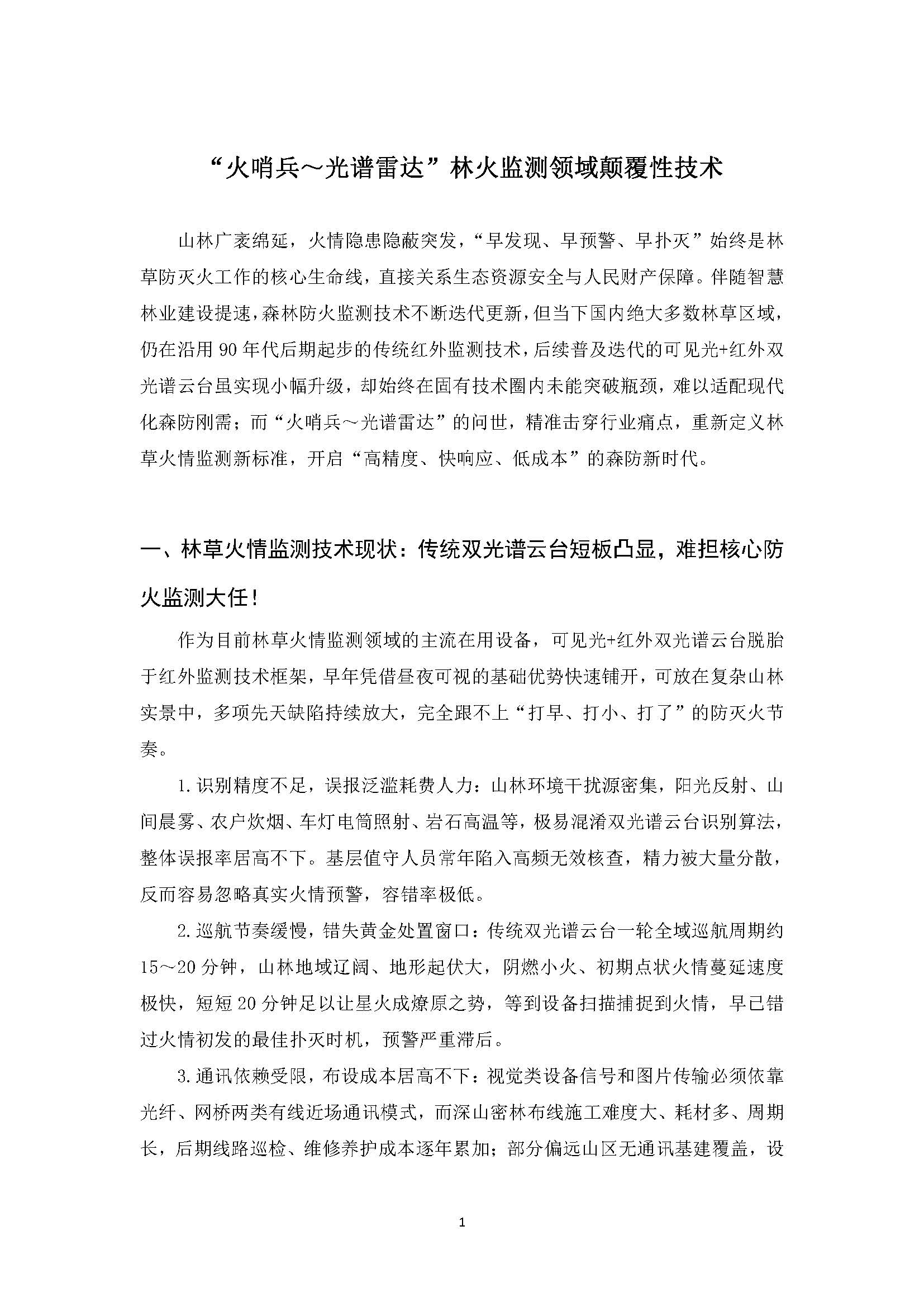 “火哨兵~光谱雷达”林火监测领域颠覆性技术