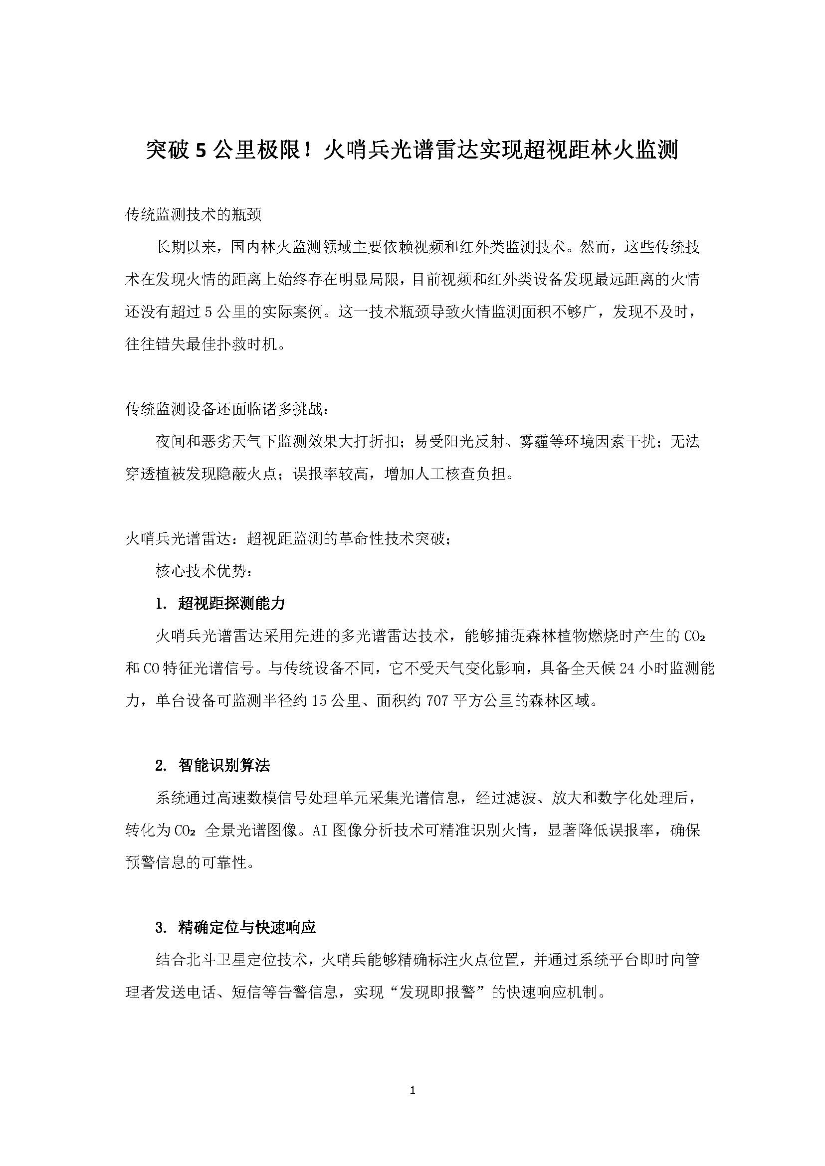 “火哨兵~光谱雷达”林火监测领域颠覆性技术